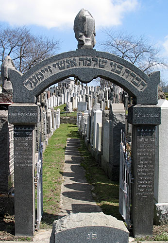 1 Large version of the photo above 2 MOUNT NEBOH CEMETERY - MAP OF CONGREGATION BNEI SCHLOME ANSHEI ZEIMEL SECTION 3 INDEX & PHOTOS OF TOMBSTONES, BY FIRST NAME WITHIN LAST NAME SEQUENCE 4 Enlarged photo of the left pillar in the photo above 5 Enlarged photo of the right pillar in the photo above 6 Enlarged photo of the top of the entrance in the photo above